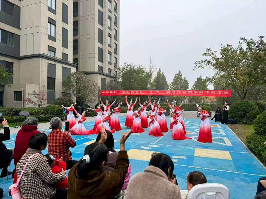 学苑社区联合中牟新区党工委宣传部、中牟新区新时代文明实践中心、中牟新区文联、广惠街街道新时代文明实践所、公安局、司法局等多家单位共同举办了“我们的节日·重阳”主题活动。活动通过“文艺汇演+反诈宣讲+便民服务”的多元形式,为辖区老年居民送上了一份丰盛温暖的节日关怀。