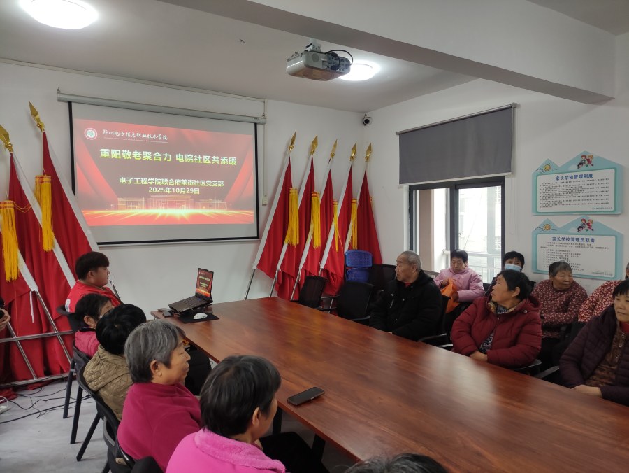 岁岁重阳,今又重阳。为传承尊老敬老的中华传统美德,搭建校社共建桥梁,近日,府前街社区党支部携手郑州电子信息职业技术学院,共同举办“重阳敬老聚合力 电院社区共添暖”主题活动,为社区老年朋友们送上一场集便民服务、文化陪伴与情感关怀于一体的暖心盛宴。