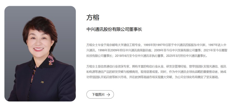 官网介绍,方榕是信息通信行业资深专家,拥有丰富的电信行业从业、研发及管理经验,曾带领团队实现光通信、视讯和电源等通信产品的研发突破与规模商用,取得显著成果。同时,作为中兴通讯全球化战略的重要推动者,她成功带领团队开拓印度等新兴市场,并在欧洲等高端市场实现重大突破,为公司全球化布局奠定了坚实基础。
