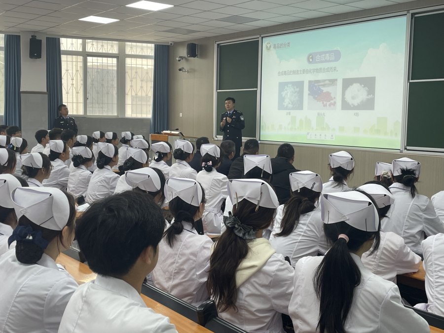 针对护理专业学生的未来职业特性,禁毒民警精心准备了宣讲内容。除了系统讲解传统毒品与新型毒品的种类和危害,还特别增设了“麻醉药品和精神药品规范使用与滥用防范”专题。“同学们未来都将成为白衣天使,既要警惕生活中伪装成零食、饮料的毒品,更要深刻认识医疗工作中麻精药品的双重属性。”民警通过PPT展示,结合真实案例强调,“在医生手中,它们是缓解病痛的良药;一旦脱离医嘱滥用,就会成为毁人一生的毒药。”