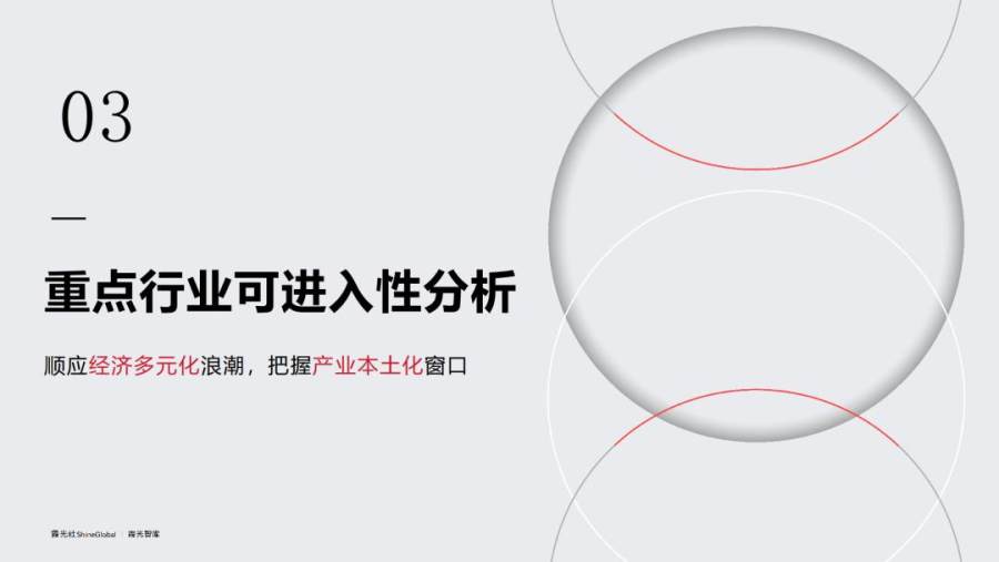 在中东各国推行经济多元化的背景下,企业应聚焦于各国“国家战略优先扶持”的行业。当前正是抓住“产业本土化窗口期”的关键时刻。