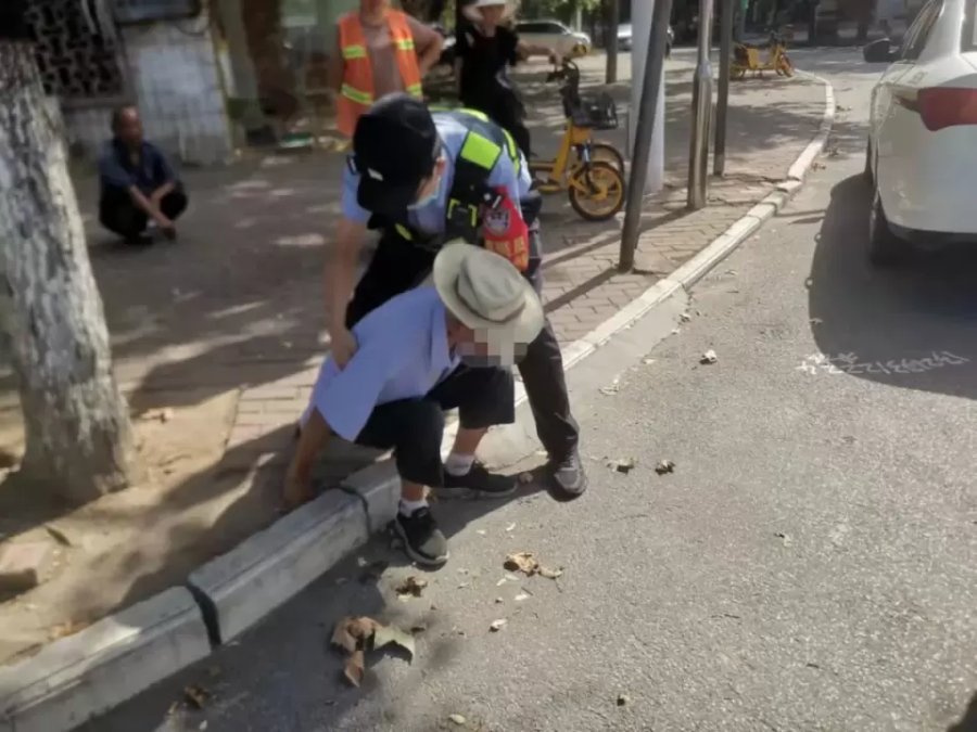 当日中午12时许,桐柏县公安局城关派出所民警正在城区开展入户走访,当行至八一路口时,一名群众神色匆忙地对民警说“快,那边一个老头摔倒了”。民警根据热心群众指引的位置,迅速赶到现场,只见一位老翁趴在地上,民警迅速将其扶起坐在路边,老翁的脸上因擦破皮还在流血,民警对其进行情绪安抚后,将其送到附近的一家诊所,对老人的面部出血处进行前期清洗消毒,同时拨打120急救电话。在等候救护车期间,老翁神志慢慢清醒。经民警了解得知,摔倒老人邓某,91岁,桐柏县吴城镇人,现住县城某厂区家属院,当天中午邓某在回家路上因气温较高,身患多种疾病的他突然昏厥摔倒。通过询问老翁、走访周边知情群众,民警联系上了其家人赶到现场。随后,民警和其家人将邓某搀扶到120救护车上,护送到医院进一步检查治疗。