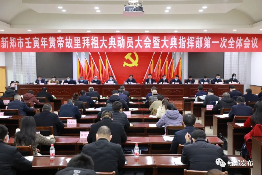 会上宣读了《关于成立新郑市壬寅年黄帝故里拜祖大典指挥部的通知》,通报了省委关于壬寅年黄帝故里拜祖大典总体方案,传达了省、郑州市关于拜祖大典工作相关会议精神。