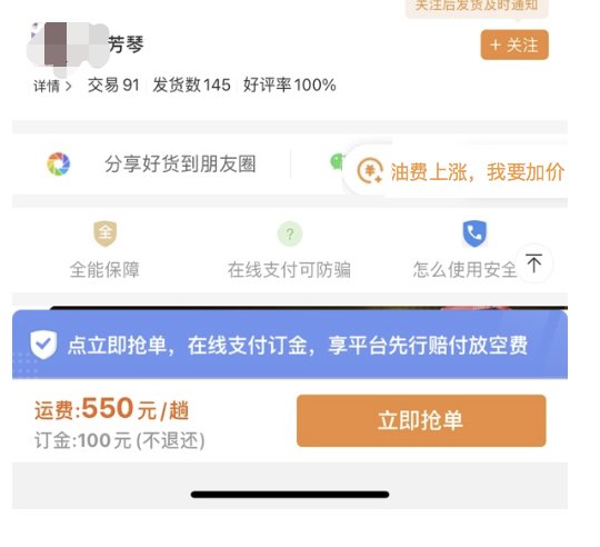 司机抢单页面,提示与货主沟通“油费上涨,我要加价”