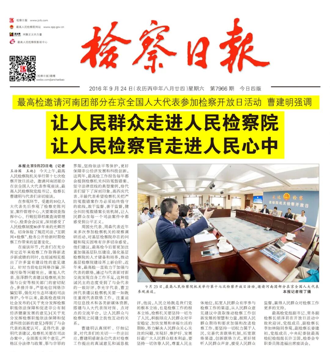 2016年9月23日,姜明代表参加最高检邀请河南团部分在京全国人大代表走进人民检察院活动。