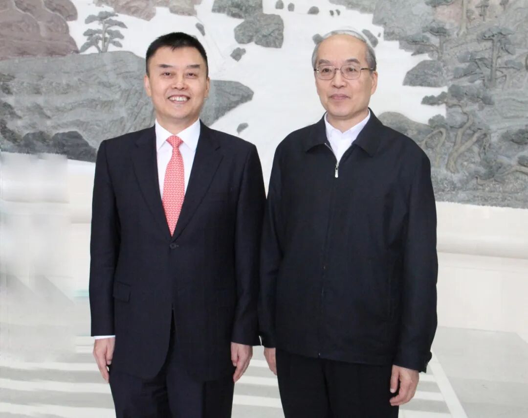 最高人民检察院党组书记、检察长张军与姜明代表握手交流