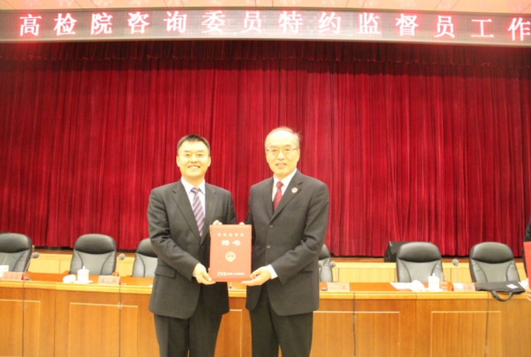 张军检察长给姜明代表颁发最高人民检察院特约监督员证书