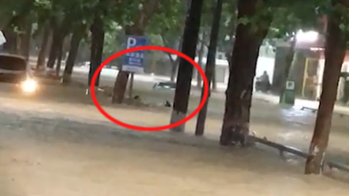爱比雨大!一女子暴雨中被困,危机时刻餐饮店店长跳入水中救人
